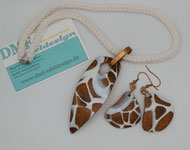 Schmuckkombination: viereckig gehäkelte Kette mit Schmuckanhänger mit Karabiner-Verschluss aus Edelstahl silberfarben mit Kettenanhänger in selbst gearbeitetem Modellier-Clay-Design,